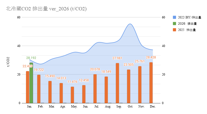 2026年1月 CO₂排出量のご報告 2026年2月15日2026年3月3日 お知らせ 地域社会貢献 ― 基準年2022年および太陽光発電導入後との比較 ― 当社では、脱炭素化への取り組みの一環としてCO₂排出量の算定および公表を継続しています。本記事では、2026年1月の排出量について、基準年である2022年および昨年記録していた2025年と比較してご報告いたします。
